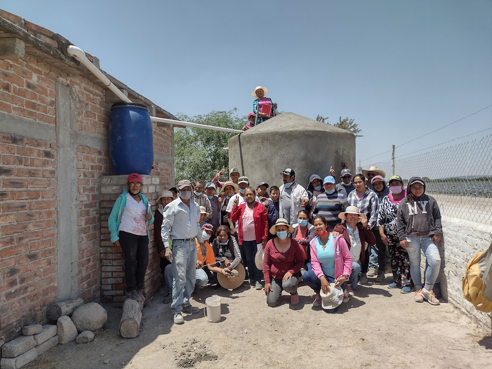Caminos de Agua es una organización reconocida por su trabajo colaborativo con comunidades locales, incluyendo la construcción de sistemas de captación de agua de lluvia, mostradas en la imagen a continuación. En el norte de Guanajuato, la cosecha y el tratamiento de lluvia para beber y cocinar es una alternativa más segura y fácil, a diferencia del consumo del agua bombeada por los pozos que tienden a contenerniveles altos y crecientes de arsénico y fluoruro.