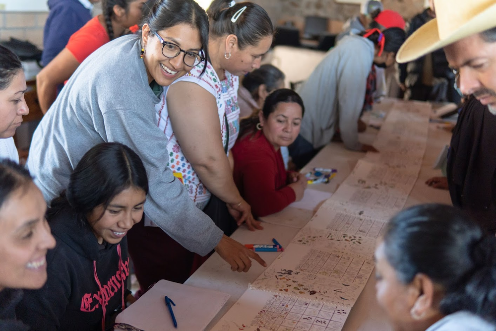 Una integrante del equipo de Caminos de Agua y varias líderes comunitarias en una “Comunidad de Aprendizaje del Agua” en San Cayetano, SLP en 2022